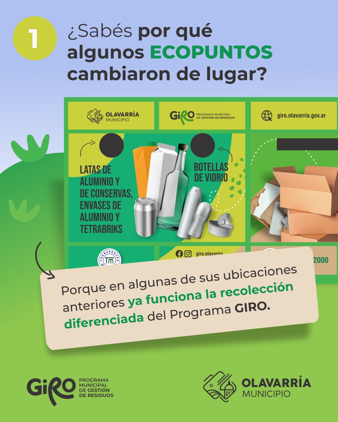 El Municipio de Olavarría, a través del área de Ambiente de la Secretaría de Desarrollo Económico y Productivo, informa que continúan los trabajos de reubicación de Ecopuntos en distintos sectores de la ciudad, en el marco de las políticas orientadas al cuidado del ambiente y a una correcta separación de los residuos.