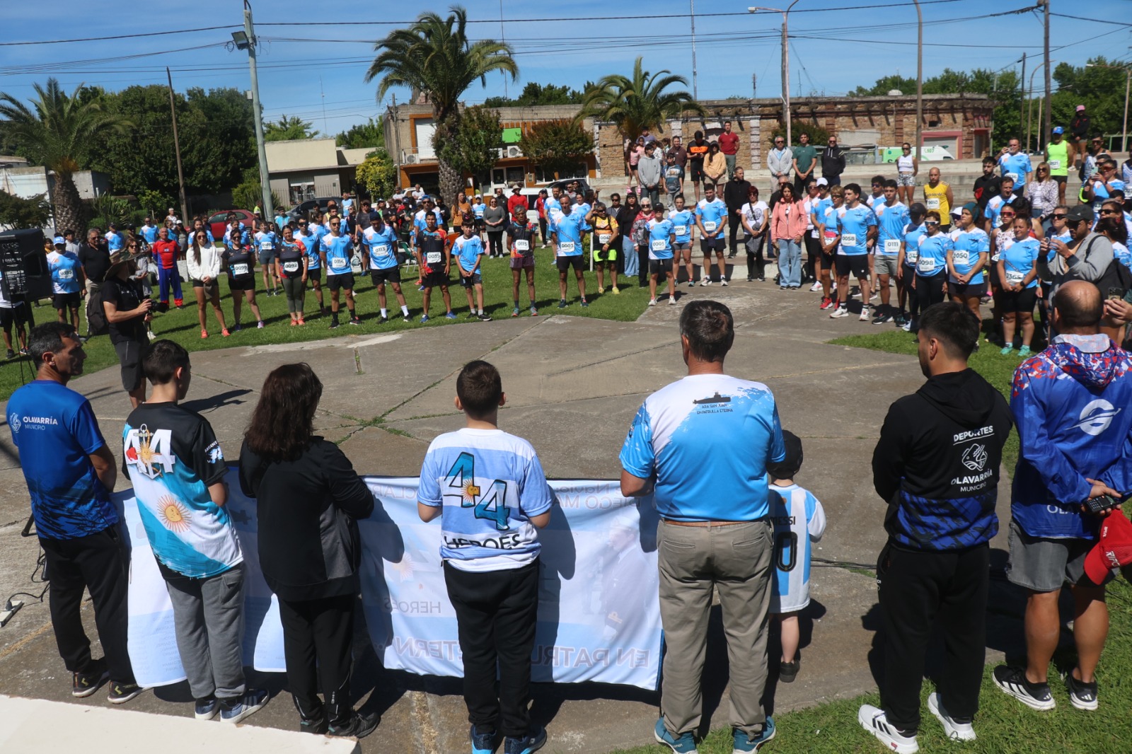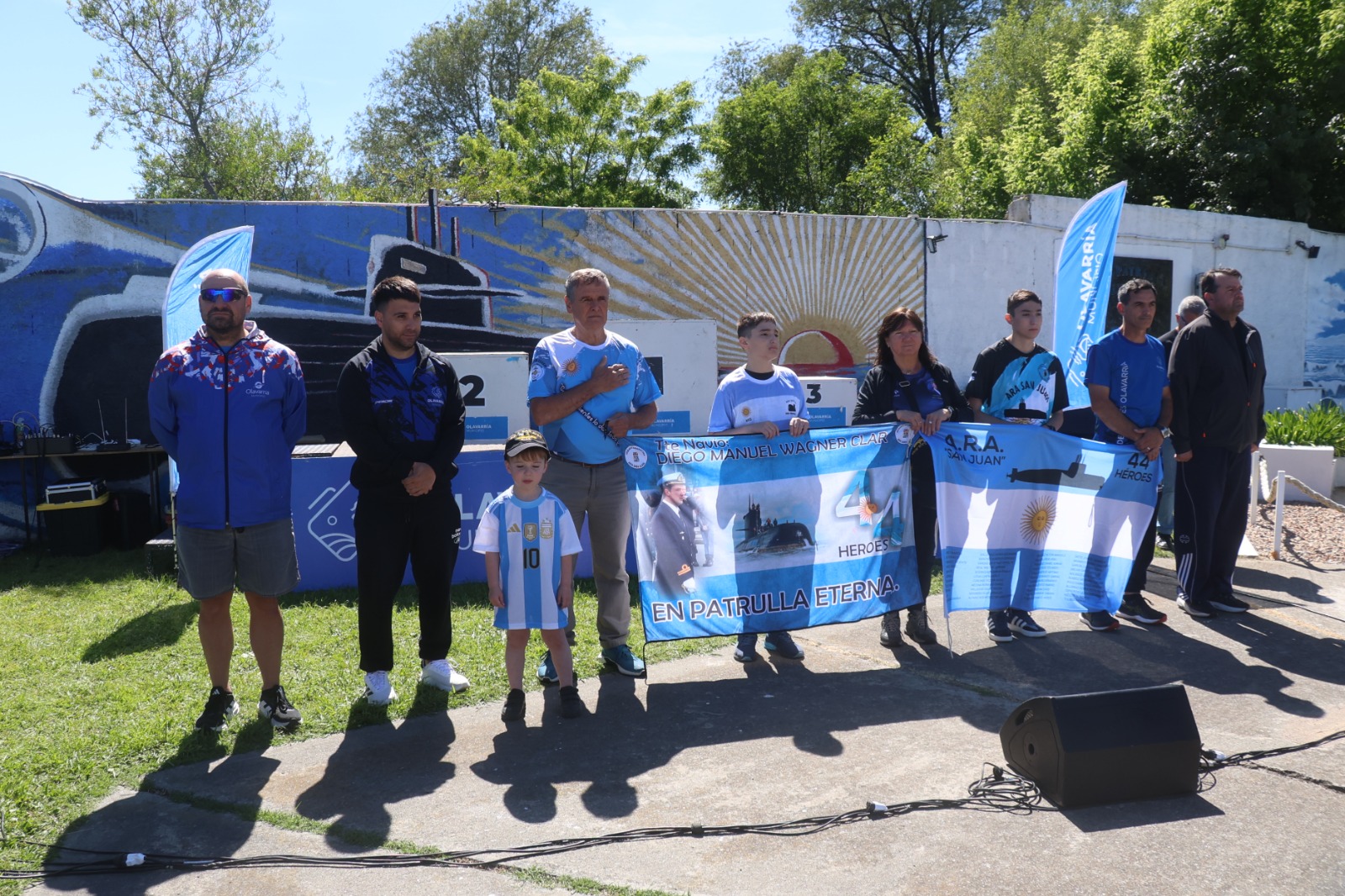 En una jornada a pleno sol y con un importante marco de público se desarrolló este domingo la carrera “Homenaje ARA San Juan – Capitán de Corbeta Diego M. Wagner”, propuesta organizada desde el Municipio, pero con la participación activa y acuerdo de familiares del héroe olavarriense. La actividad se desarrolló en Hinojo, con la participación de más de 200 personas, que cumplieron con un trazado que recorrió distintos puntos de la localidad donde se encuentra emplazada la réplica del ARA San Juan y la plazoleta que precisamente rinde homenaje a Diego Wagner y los 43 tripulantes.