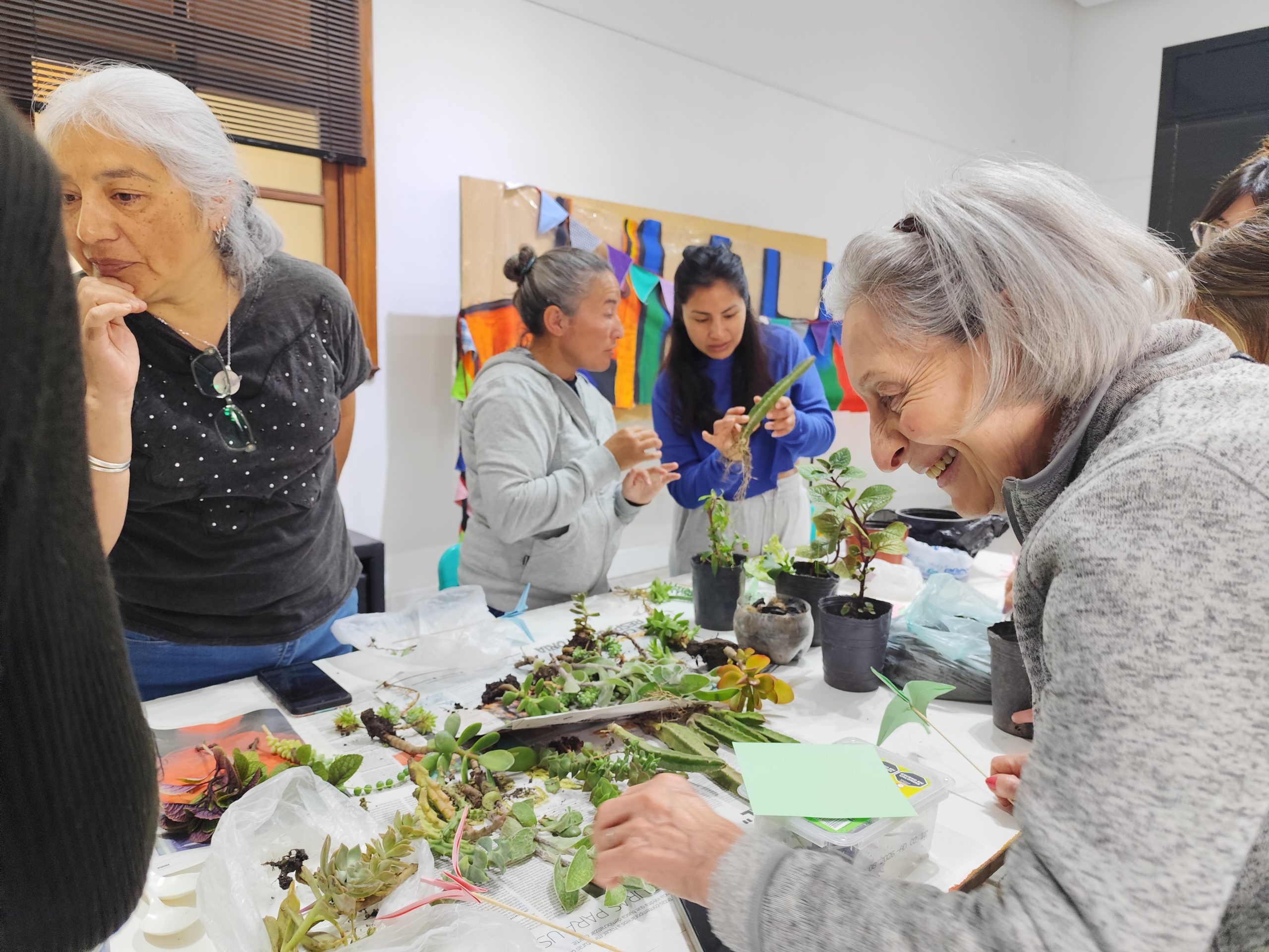 La actividad surgió tras un primer encuentro, en el que se construyeron lazos y redes que impulsaron la realización de una nueva edición, en el marco de la cual se intercambiaron gajitos de diferentes especies para construir sus propias macetas.