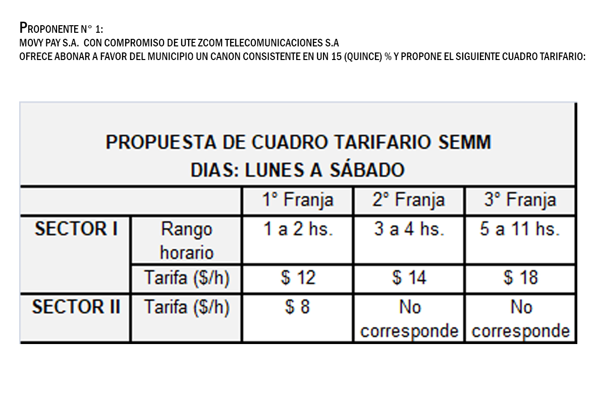 Dentro del pliego, el Ejecutivo pautó la presentación de tarifas que respeten tres franjas horarias en el Sector I (comprendido por las calles Hornos – Lavalle – Necochea – España -incluye Necochea hasta Pringles-), con el objeto de favorecer la rotación vehicular.