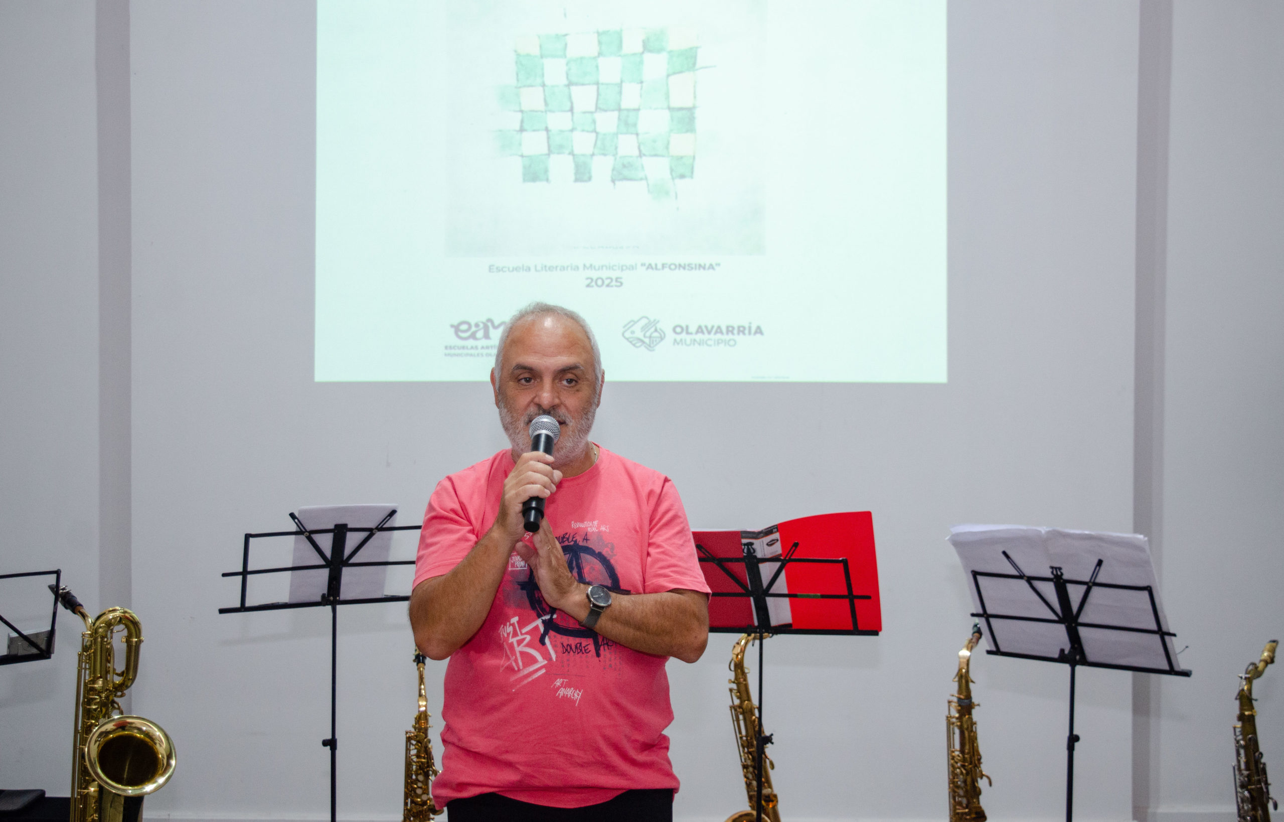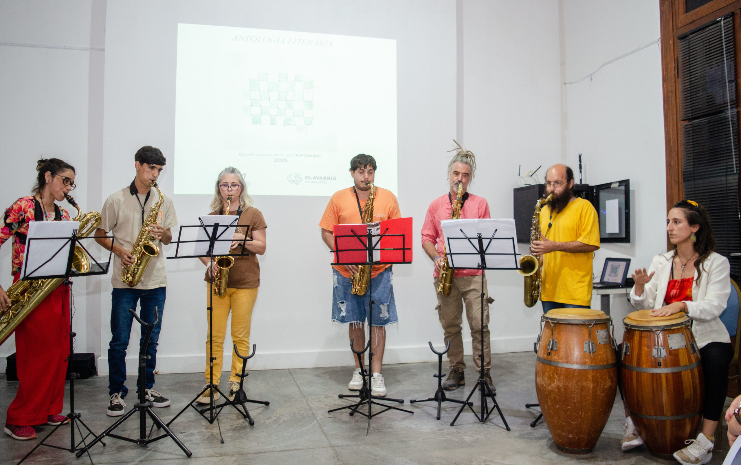 Posteriormente se llevó a cabo la presentación del libro que reúne las obras literarias realizadas por estudiantes durante el 2025. Posteriormente, se contó con la presentación en vivo del Ensamble de Saxos de la Escuela Municipal de Música.