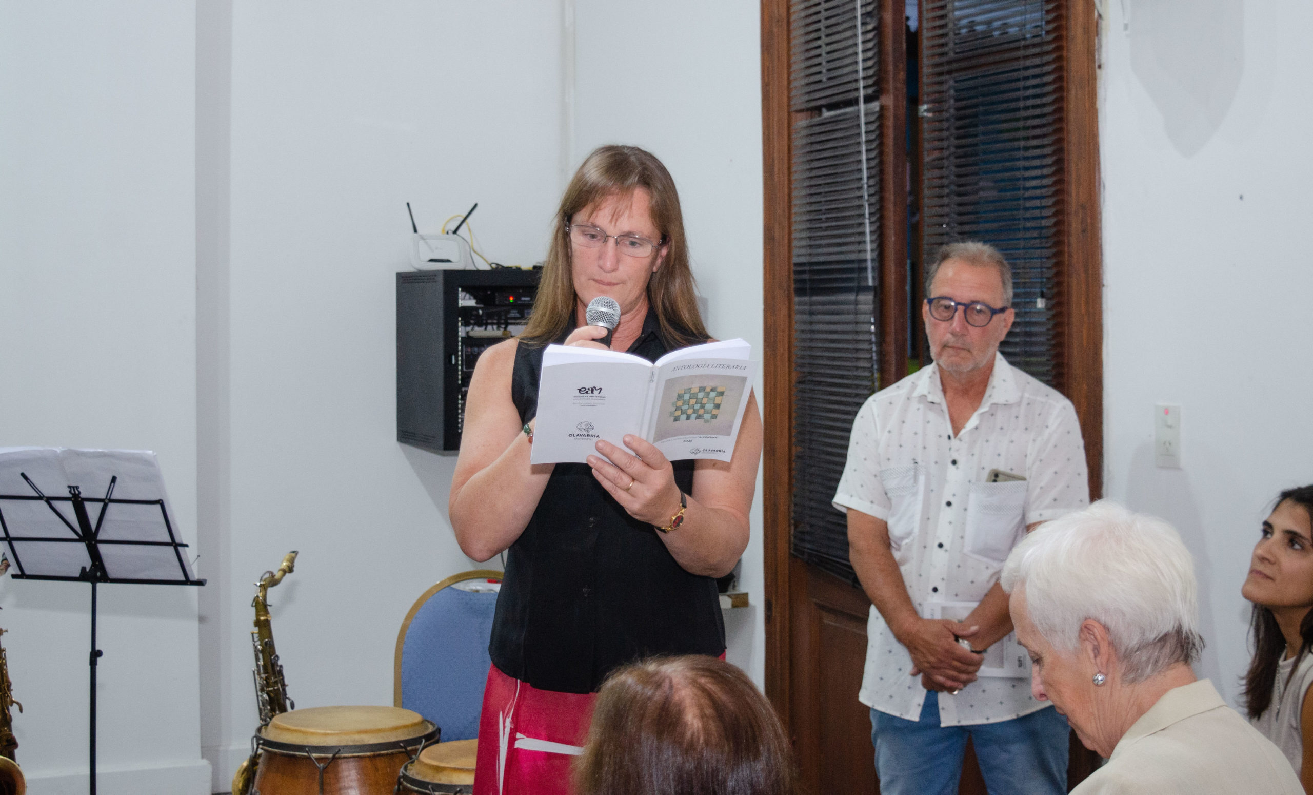La actividad se inició a las 19 horas, encabezada por el director de Educación del Municipio, Diego Lurbe, quien no sólo fue el encargado de dar las palabras de bienvenida, sino también de entregar un merecido reconocimiento a Nora Sollé por su trayectoria y aporte a la institución. Solle, reconocida docente y gestora cultural local, dejó la coordinación del espacio tras décadas de labor. Su lugar ahora será ocupado por la docente María Victoria Pesci.