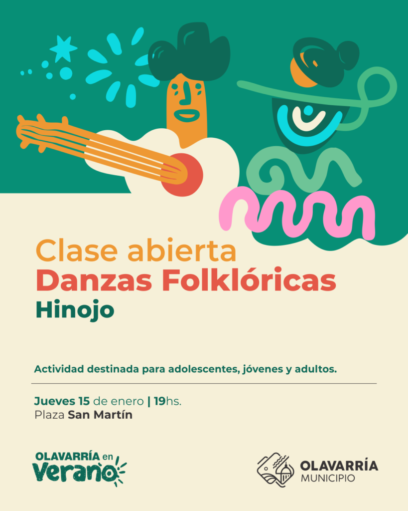 El Municipio de Olavarría invita a toda la comunidad a participar de una clase abierta de danzas folklóricas, que se llevará a cabo este jueves 15 de enero, desde las 19 horas, en la Plaza San Martín de Hinojo, en el marco de las actividades por el 139º aniversario de la localidad.