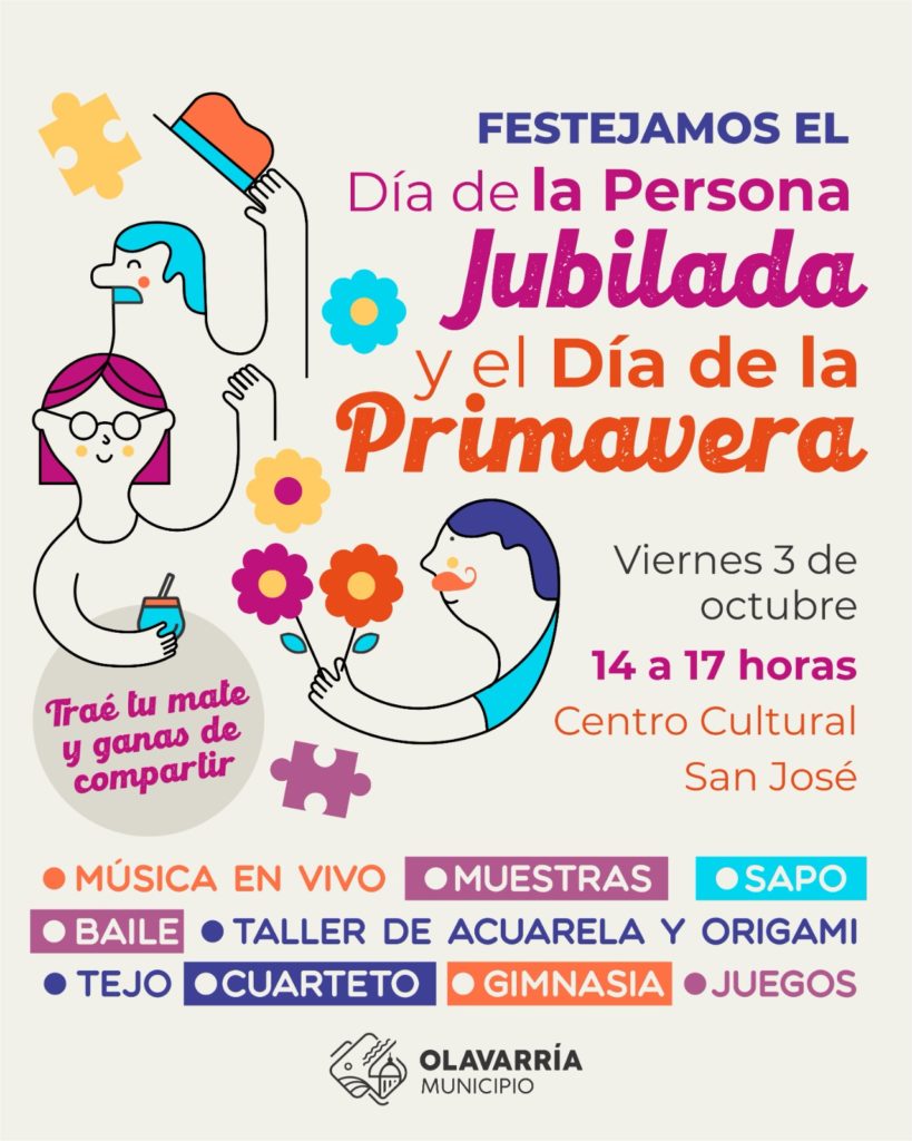 El Municipio de Olavarría informa que este viernes 3 de octubre se realizará la celebración en el marco del Día de la Persona Jubilada y el Día de la Primavera.
