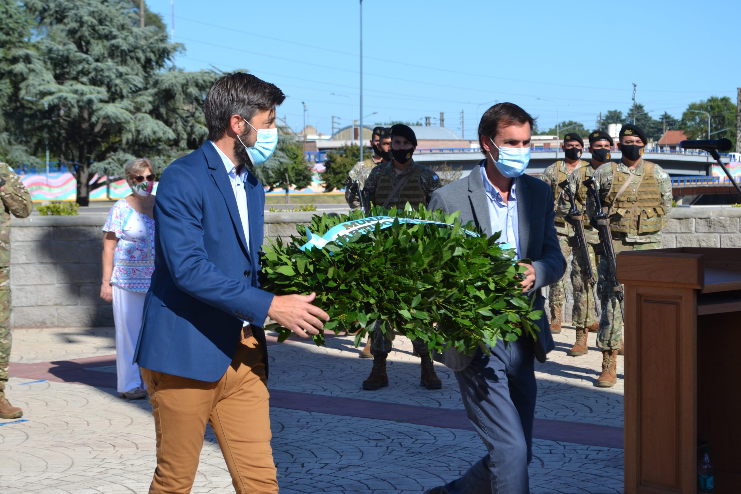 Posteriormente, el Intendente Interino Juan Mujica junto al Presidente del Concejo Deliberante Bruno Cenizo fueron los primeros en colocar la ofrenda floral en el Monumento al Libertador, en representación de toda la comunidad olavarriense.