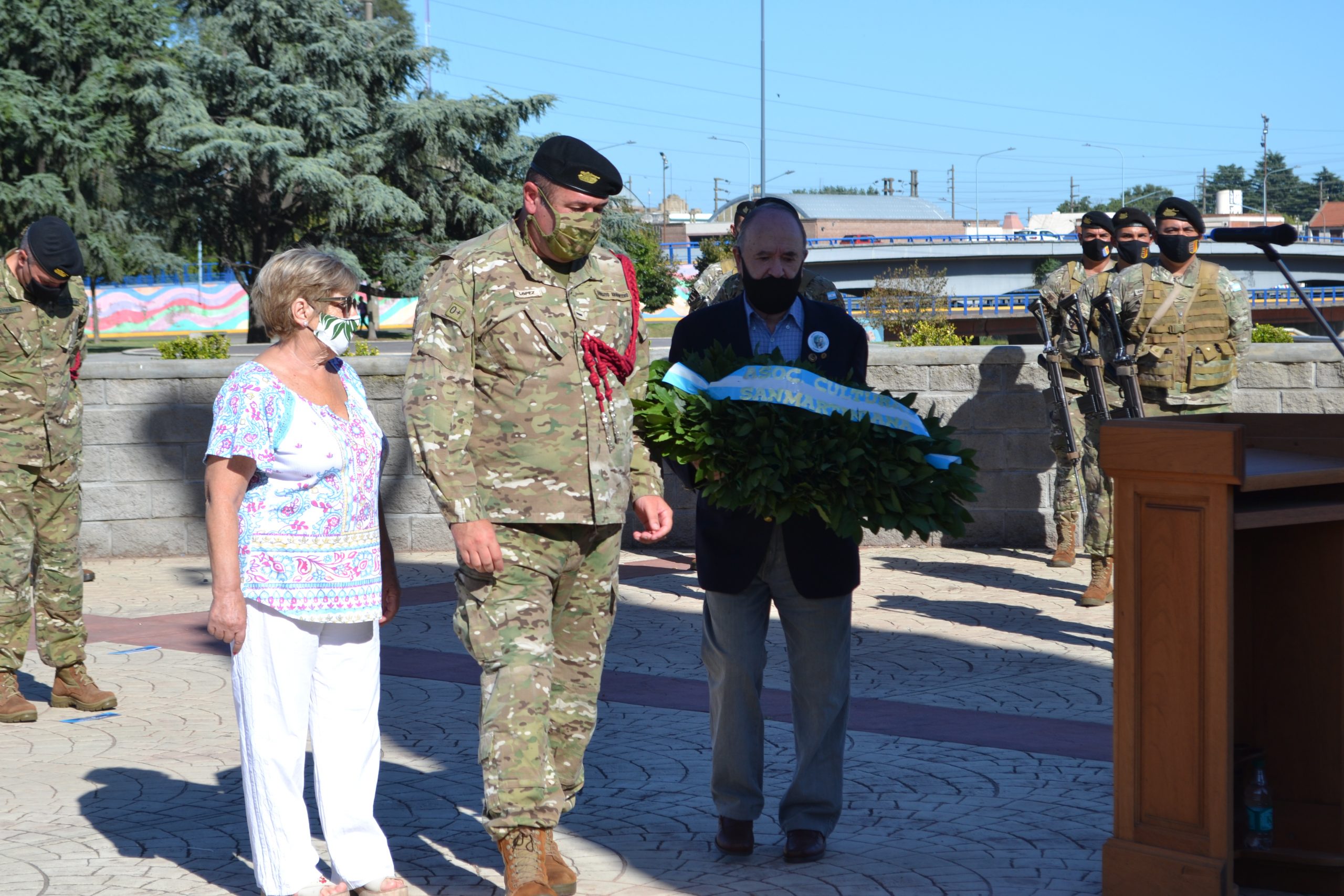 Con estas palabras se iniciaba el acto que fue encabezado por el Intendente Interino Juan Mujica, el Jefe del Regimiento de Caballería de Tanques 2 Teniente Coronel Cristian Castellanos, el Jefe del Escuadrón de Ingenieros Blindado 1 Mayor Nicolás Augusto Etienot, el Presidente del Concejo Deliberante Bruno Cenizo, el Presidente de la Asociación Cultural Sanmartiniana Comandante Héctor Hoyos, el Presidente del Consejo Escolar Bruno Di Carlo, representantes de la Asociación Veteranos de Guerra “2 de Abril”, Unión de Soldados Continentales, Bomberos Voluntarios, junto a concejales, autoridades municipales, educativas, militares y fuerzas de seguridad.