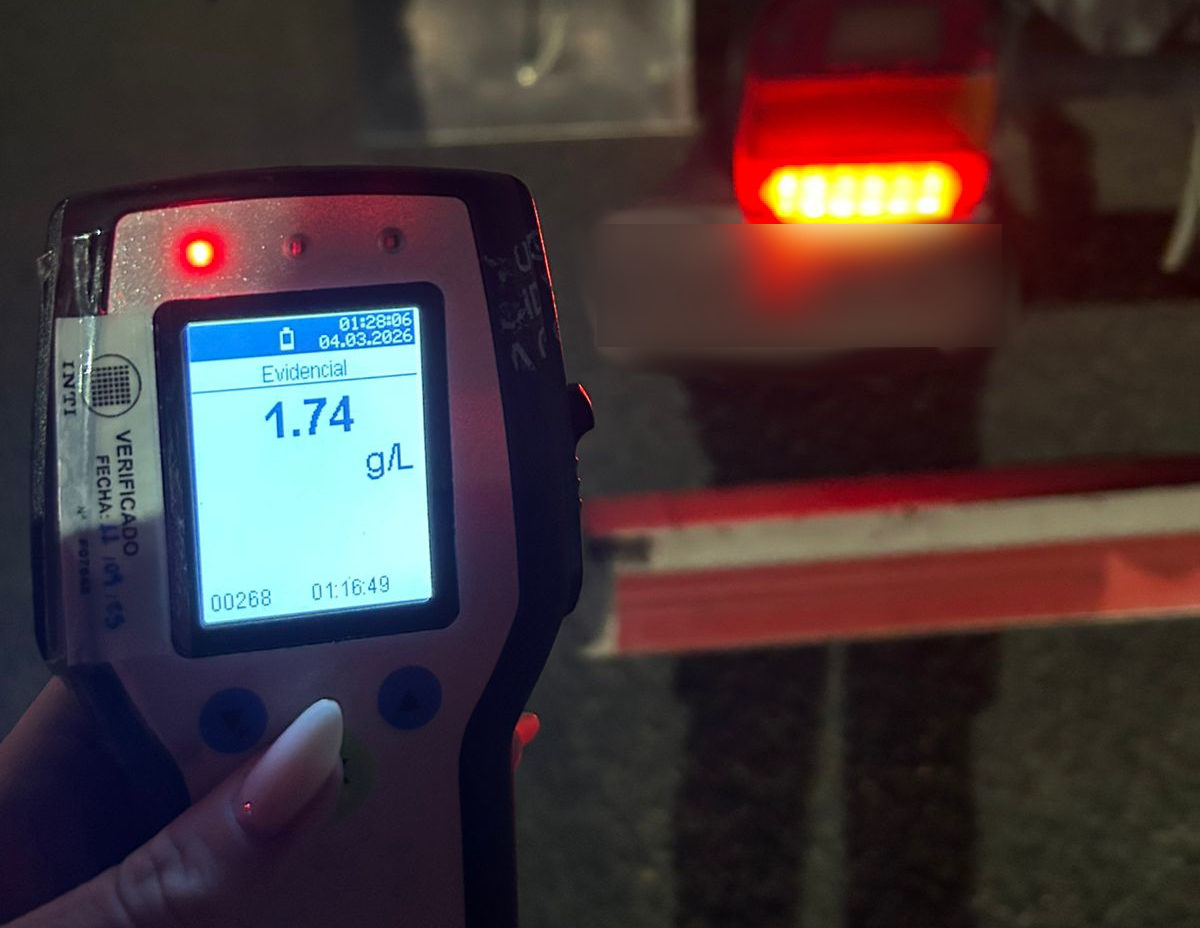 En ese marco, además, se efectuó el correspondiente test de alcoholemia que arrojó un saldo positivo, con un dosaje de alcohol en sangre de 1,74 g/l. Vale recordar que en todo el territorio bonaerense rige la Ley de “Alcohol 0” al volante.